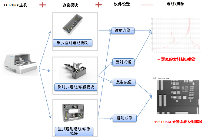 4、多個可選配的功能模塊:橫式透射譜線模塊、豎式透射譜線/成像模塊、反射譜線/成像模塊